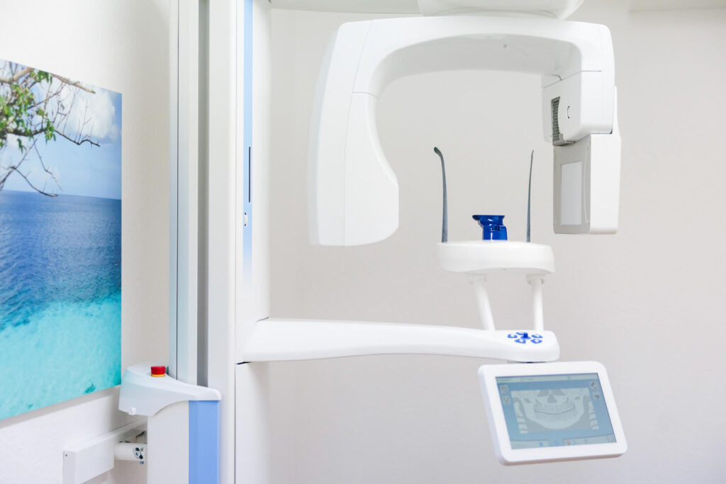 Der Digitale Volumentomograph erstellt dabei im Vorfeld einer Implantation eine dreidimensionale Röntgenschichtaufnahme des Schädels und des Kiefers.