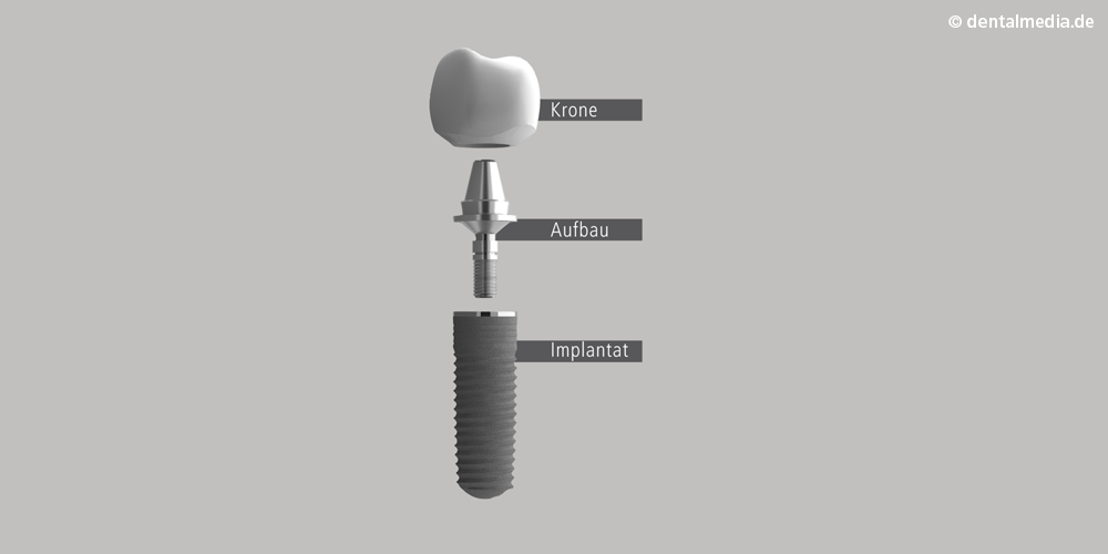 - Künstliche Zahnwurzel aus sehr gut verträglichem Titan oder Keramik