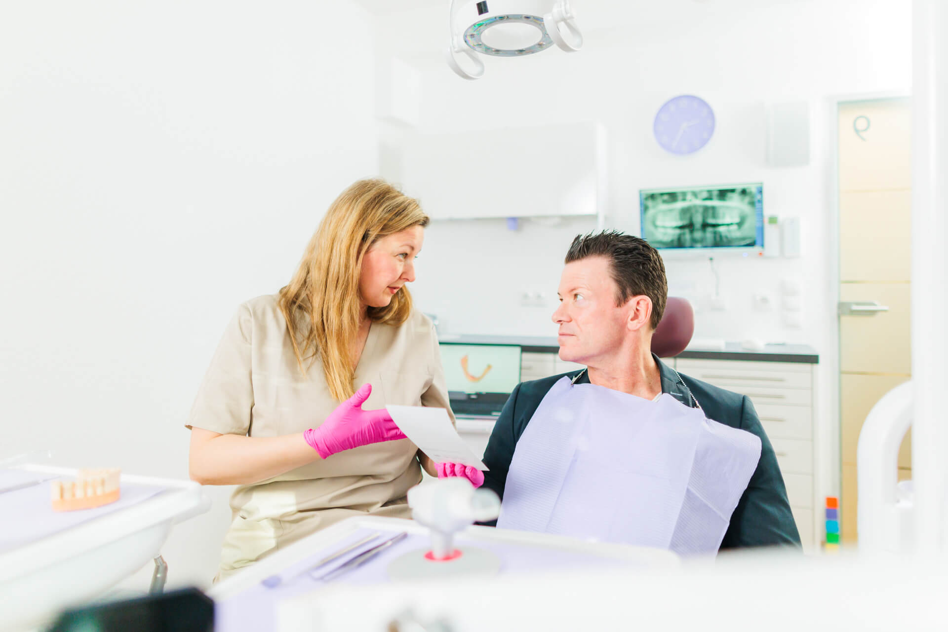 Sollte unser Befund die Notwendigkeit einer Entfernung ergeben, beraten wir Sie eingehend. Anschließend vereinbaren wir einen Termin und entfernen Ihre Zähne sehr sorgsam und schonend. Dabei besteht für Sie sowohl die Möglichkeit einen solchen Eingriff unter örtlicher Betäubung, als auch unter Sedierung oder Vollnarkose durchführen zu lassen.